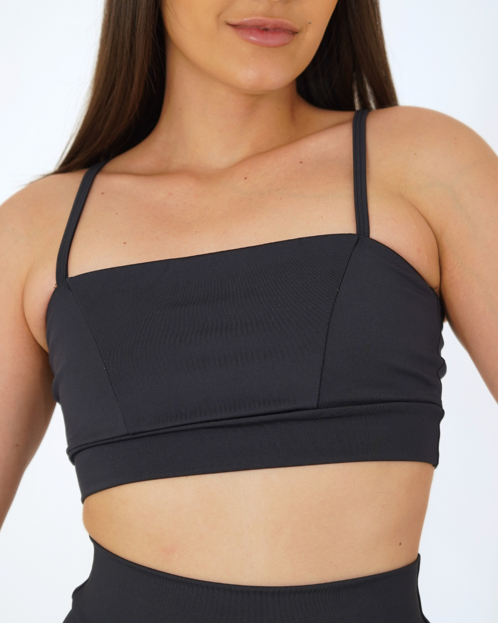 Top Basic com frente totalmente coberta, costas levemente abertas e alças reguláveis que garantem sustentação extra e ajuste perfeito ao corpo, e possuí um recorte na frente trazendo mais sofisticação para o top.